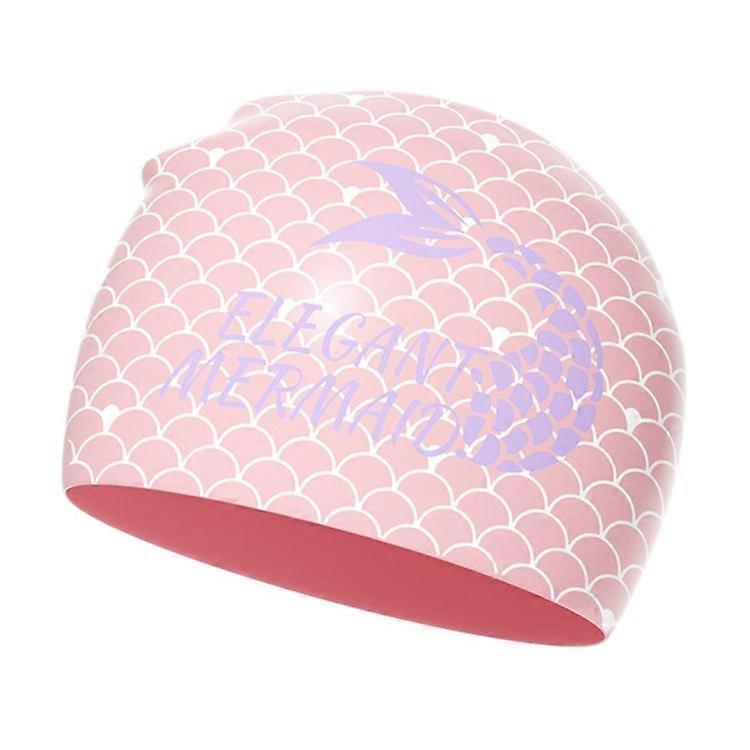 Mermaid Pattern Women Long Hair Silicone Swim Cap Non-Slip Ear Protection Swim Hat, 24x20cm