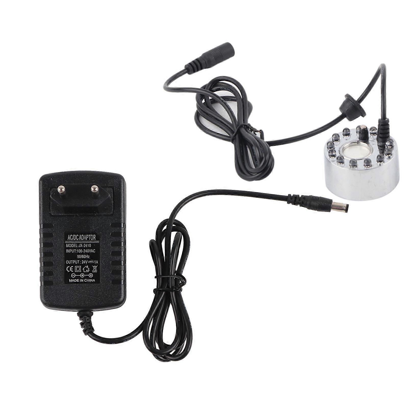 Silver Aquarium 12 LED Light Ultrasonic Mist Maker Atomizer Water Fountain Pond Indoor Outdoor Fish Tank Supplies AccessoryEU Plug 110~240V