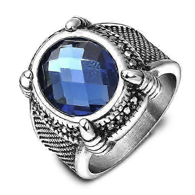 Men's Stainless Steel Statement Ring with Claw & Blue Crystal Stone - Stylish Wedding Band Fashion Jewelry for Occasions
