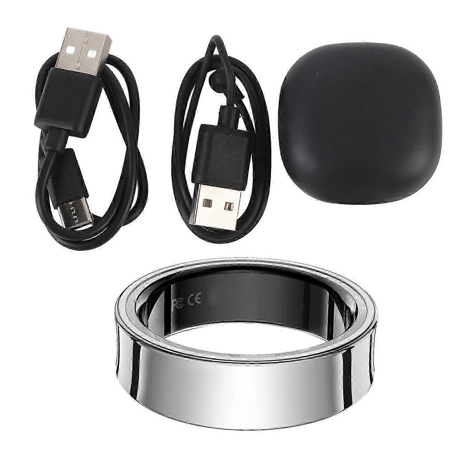 Smart Ring Bluetooth 5.3 Sleep Tracking Pedometer Remote Photography 5ATM Multiple Exercise Modes Smart Health Ring with Charging Case for Fitness Sil