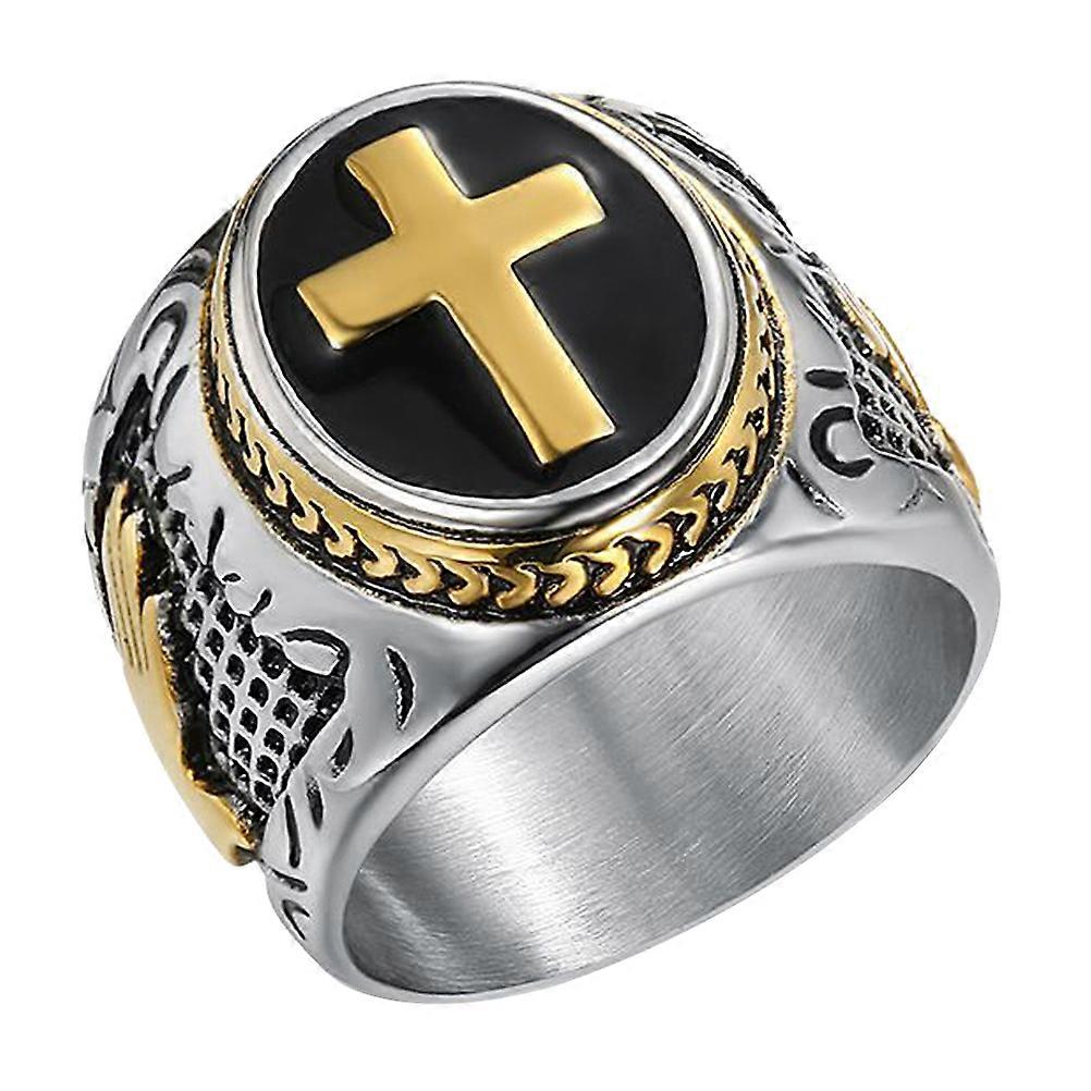 Mens Ring With Cross Golden Crucifix Stainless Steel Ring Decoration Boys Birthday 1Pcs