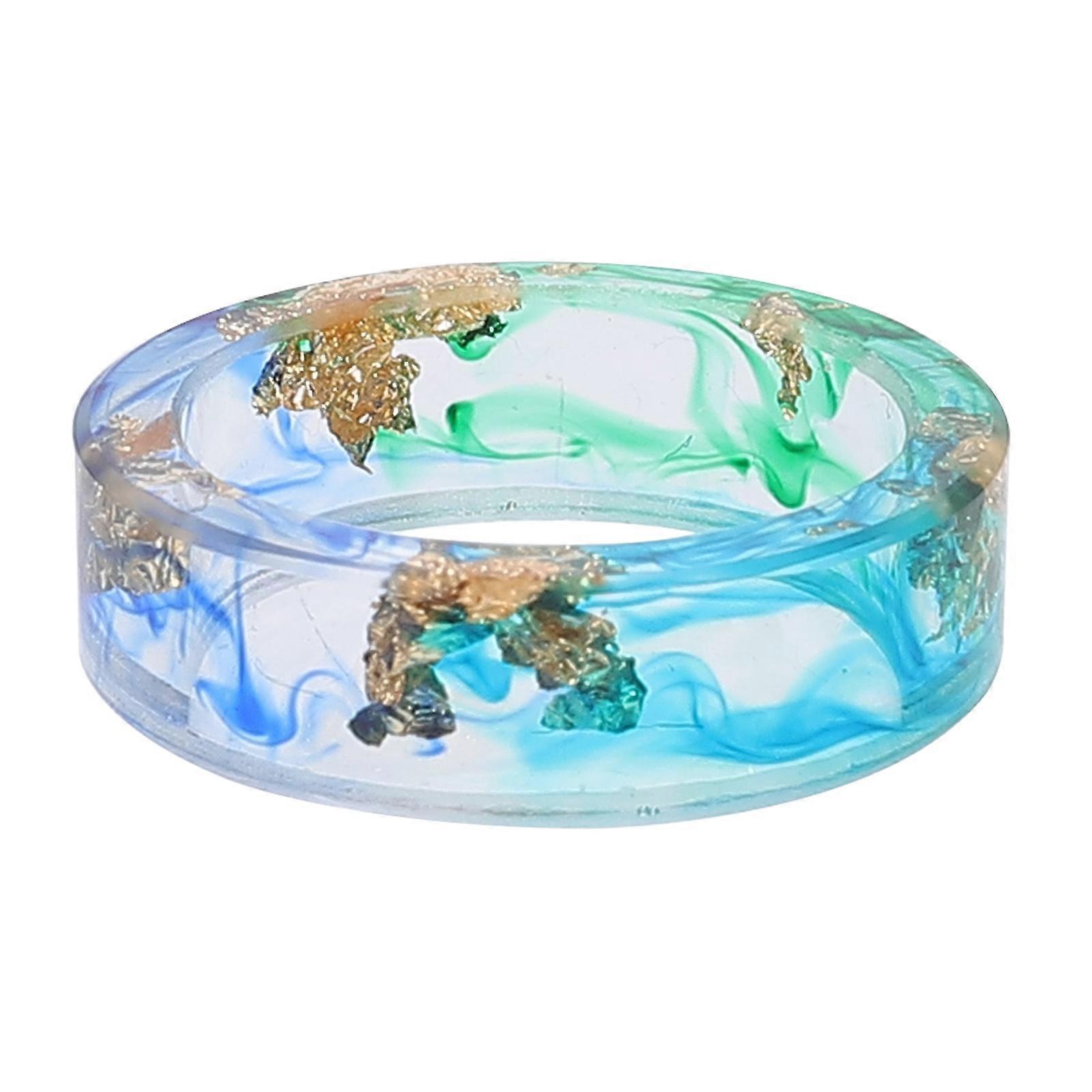 Delicate Blue Resin Ring with Gold Foil Ornament for Decor 1pc Size 6.5