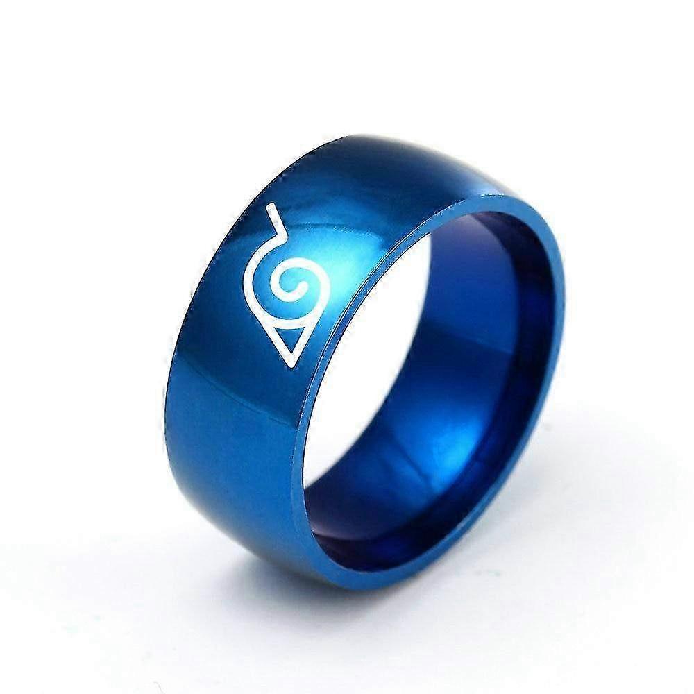 8MM Naruto Ring with Konoha Village Symbol - Black Titanium Steel Sasuke Ninja Anime Jewelry for Women & Cosplay Fashion Accessory