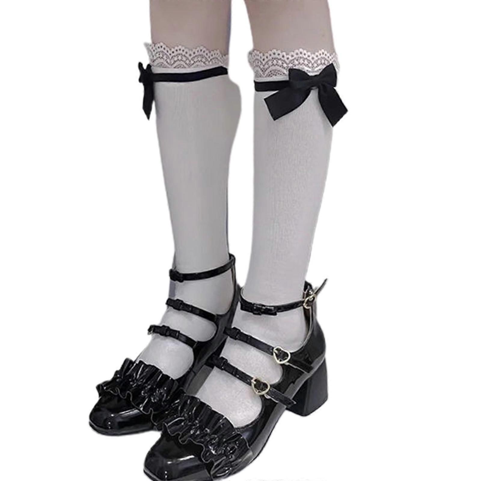 Maid Cute Lolita Socks Tube Long Socks Women Girl Pure Cotton Knee High Stockings Elastic Bow Socks