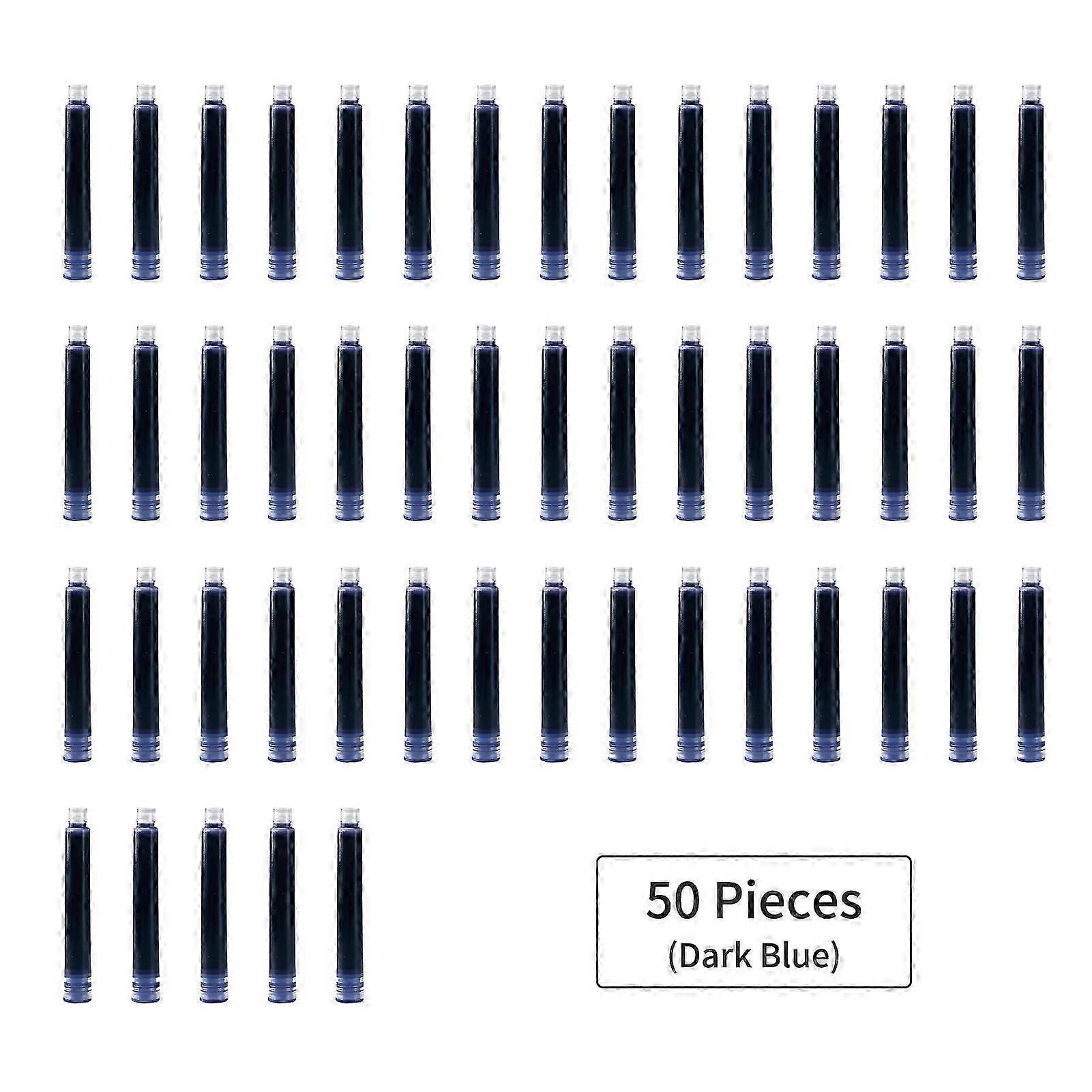 50 Pieces Fountain Pen Ink Cartridges Dark Blue Color Ink Refill Cartridge with 3.4 mm Bore Diameter for Office School Student Writing Stationery Supp