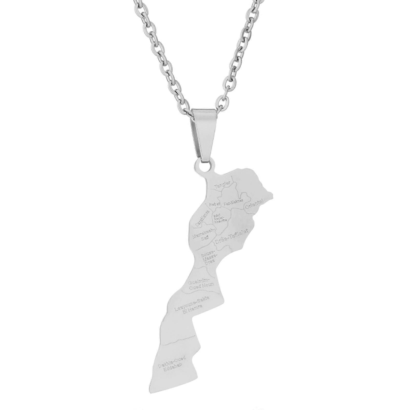 Trendy Morocco Map Shaped Pendant Necklace Map and City Necklace Long Choker Gothic Party Fashion Couple Jewelry