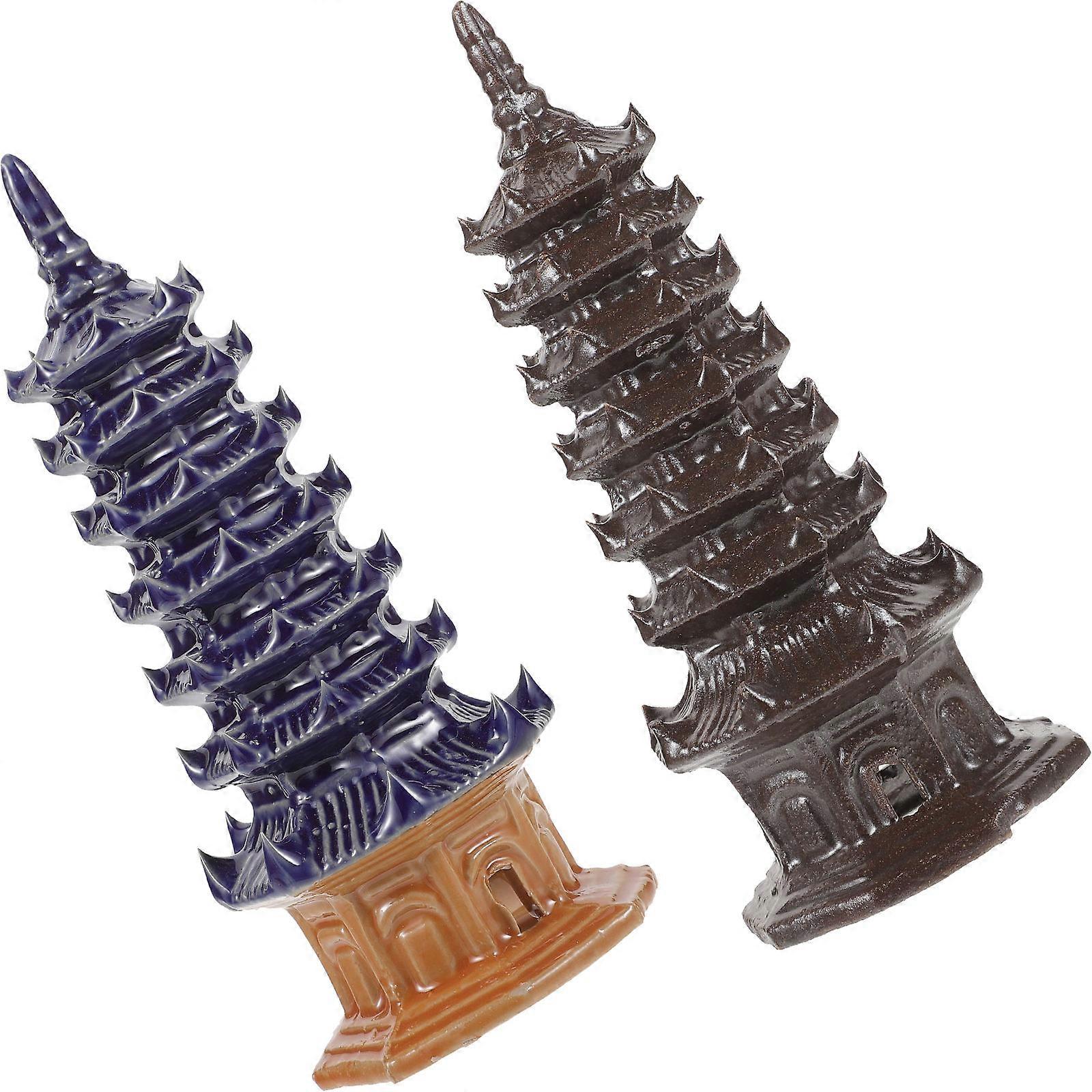 Fish Tank Aquarium Decorations Miniature Vintage Tower Ornaments Assorted Color Ceramic 2Pcs Ideal Home Decoration
