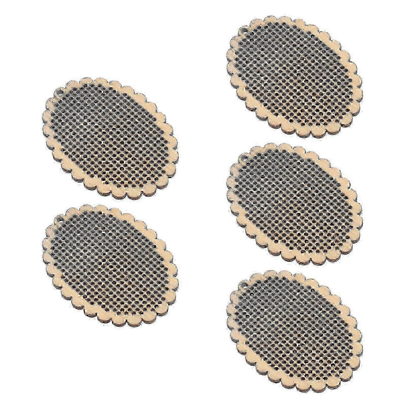 Wooden Cross Stitch Chip Diy Accessory Light Brown 6.00X4.50X0.25CM Oval Shape For Craft Projects 5Pcs