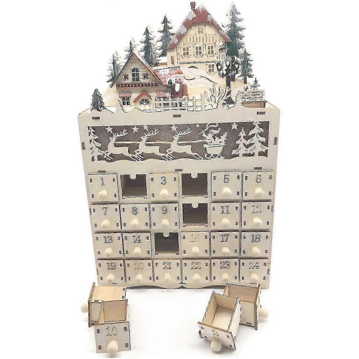 Wooden Christmas Advent Calendar Countdown To Christmas Led Holiday Decoration 24 Drawers With Led