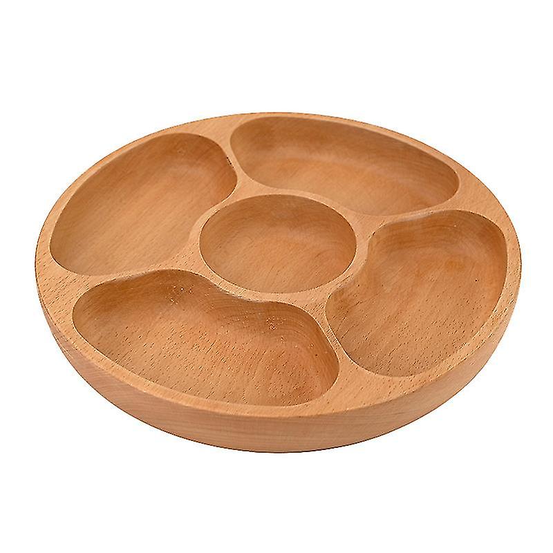Wooden Round Plate Snacks Serving Tray Dessert Sub-Grid Tableware Tray(1pc, wood color)