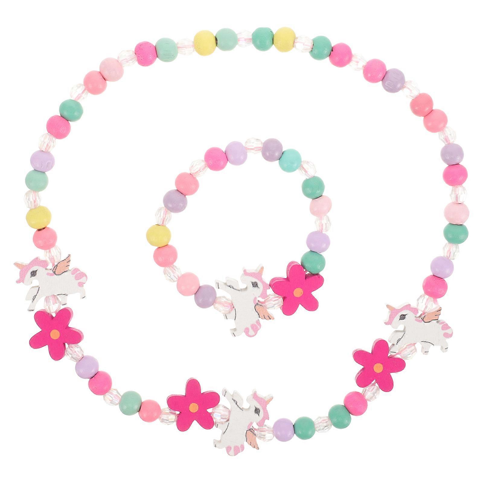 Wooden Colorful Children Jewelry Set Unicorn Beads Necklace and Bracelet Gift for Party Birthday