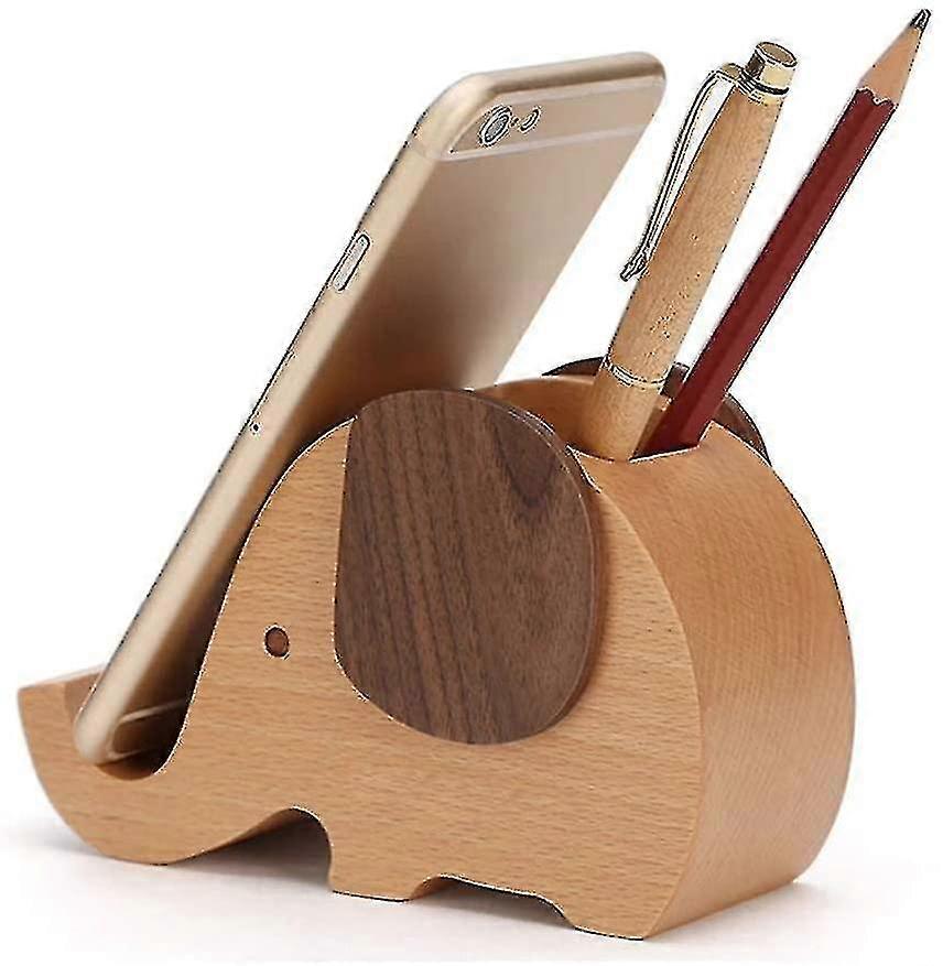 Wooden Pen Phone Holder Elephant Phone Holder Animal Phone Holder, Desktop Decoration Wooden Elephan