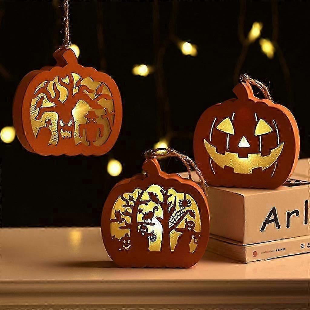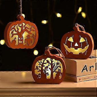 Wooden Pumpkin Lantern Halloween LED Light Haunted House Ceiling Hanging Ornament Party Horror Decoration