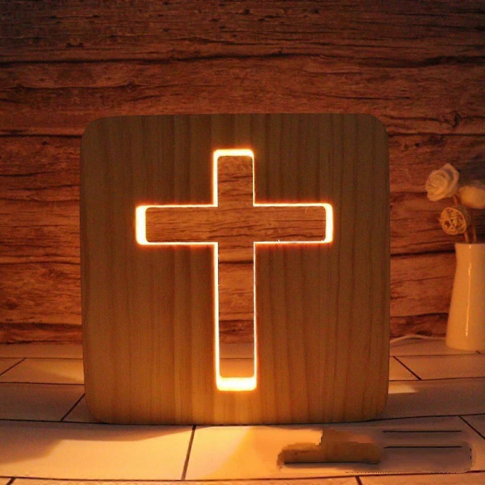 Beech Hollowed Out Cross Night Light Button Switch Endurance Natural Material Art Design Bedroom Living Room Home Decoration Lighting Use(cross)