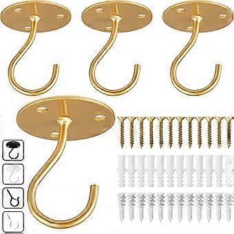 Ceiling Hooks For Hanging Plants- 4pcs 3 Inches Heavy Duty Vinyl Coated, Gold Hanging Hooks For Bird Feeders, Planters And Wind Chimes
