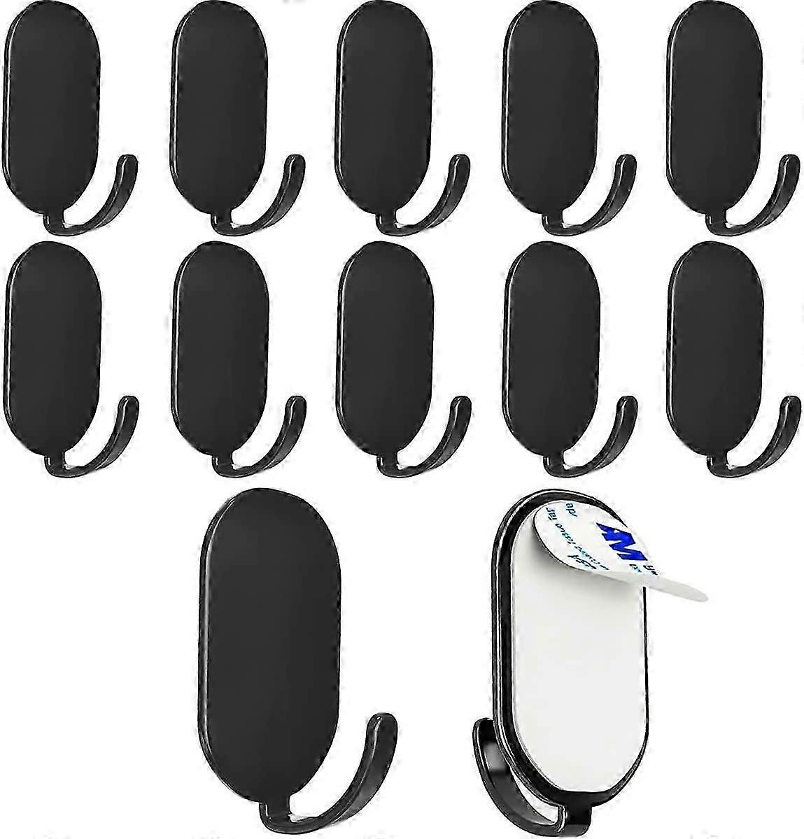 Adhesive Hooks, 12 PCS Stainless Steel Sticky Hook No Drilling Coat Hooks , Waterproof Stick on Wall Robe Hangers (Black)
