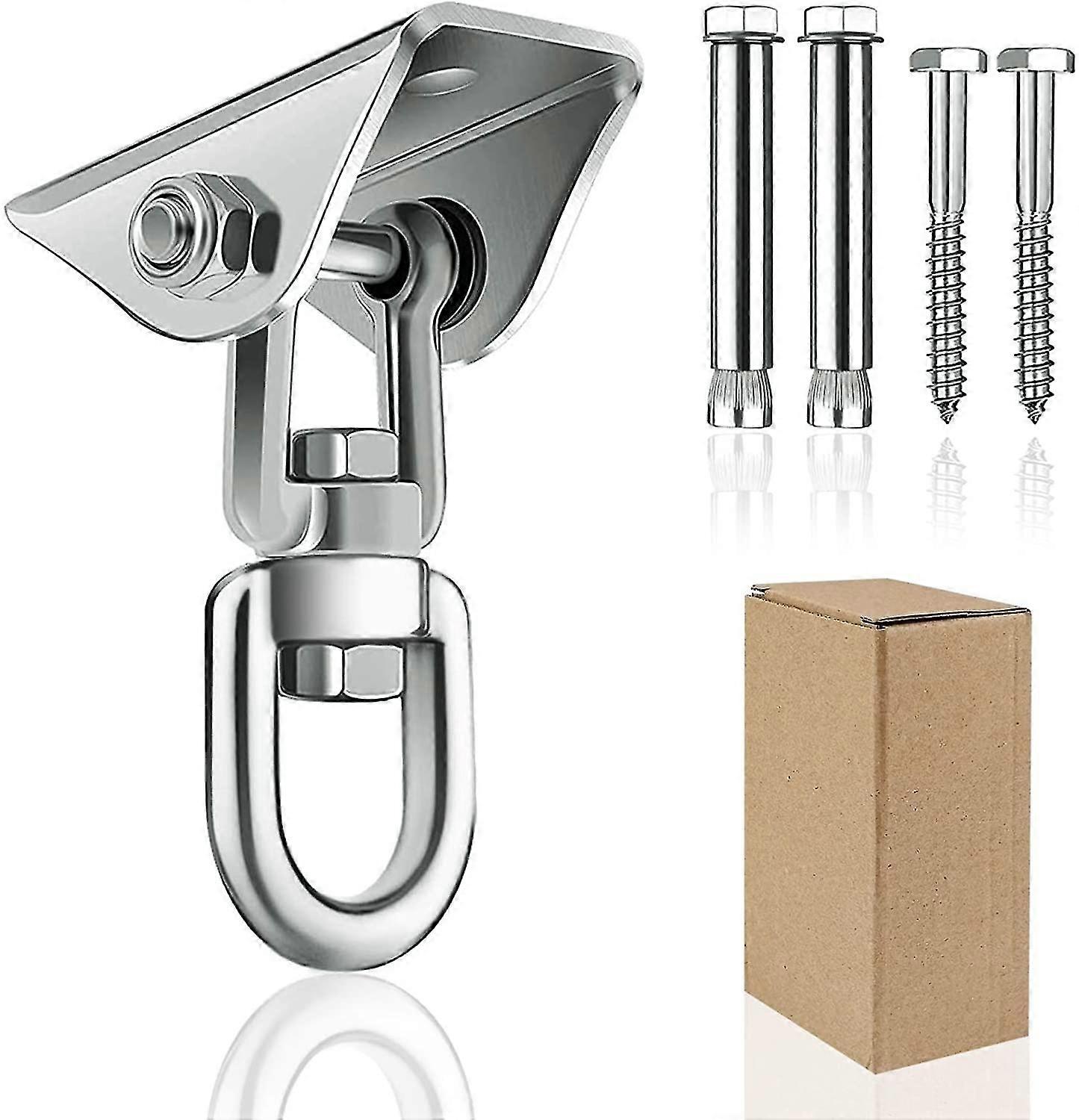 PREMIUM QUALITY CEILING HANGERSHeavy duty commercial grade swing hangers are designed for use by children and adults, and for living areas with a 400kg rating they will feel secure. For indoor and outdoor use, suitable for concrete ceilings and wooden beams, the best anchoring solution for all suspension straps and resistance trainers, hammock swing kit. SR AND RELIABLEThe ceiling hooks are made of 304 stainless steel, stronger quality, corrosion resistance, which is one of the most stable metals in the market. The indoor swing accessory can be rotated 360 and the hook more flexible, less shaking. EASY ASSEMBLYThe wall bracket comes with pre-drilled holes and the appropriate screws. The attached assembly instructions detail simple installation and a unique one-piece design that can be installed in minutes. 100% VERSATILEIdeal for use as a wall hook for sling trainers, pendant lights, punching bags, gymnastic rings, aerial yoga, canopies, hammocks or float chairs. In the backyard, on the boat, camping, hiking, fishing and sailing. QUALITY SERVICE100% Satisfaction Guarantee, is committed to providing comprehensive service to every customer. If you have any problem with this stainless steel ceiling bracket, please contact us at some time. We will offer you a satisfactory solution. Whether you want to hang your punching bag or your beloved hanging chair. Safety is definitely your priority. Even falls from low heights can cause serious injury and ruin your fun before it's even started. 304 stainless steel swing brackets are the safest and strongest option for outdoor swings, porch swings, bench swings, swing sets yoga and more. They are pre-drilled and ready to use for easy installation. Scope of delivery: 1 x ceiling mounting 4 x metal dowels (set for ceilings solid concrete) 1 x detailed assembly instructions Installation instructions: Step 1: Find the right place and draw the stop. Step 2: Mark the ellipsis with a pencil when the perfect point has been found. Step 3: Use the drill to remove the holes. Always drill a little deeper into the ceiling than dowel length. Step 4: Insert the expansion screw and make sure the top of the screw chuck is not damaged when inserting. Step 5: Install the ceiling hook and tighten the screws with a screwdriver. Stage 6: Suitable for hanging, swings, hammocks, hanging chairs, punching bags, etc.