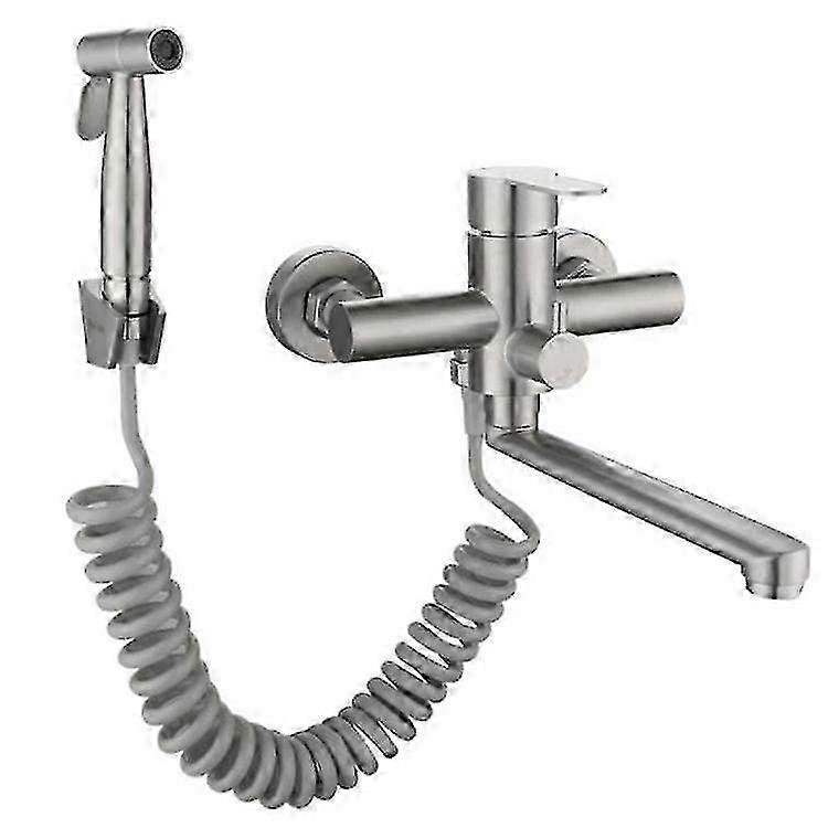 Two-Hole Wall-Mounted Kitchen Mixer, 360 Hot and Cold Water Sink Mixer with Pull-Out Spray Gun