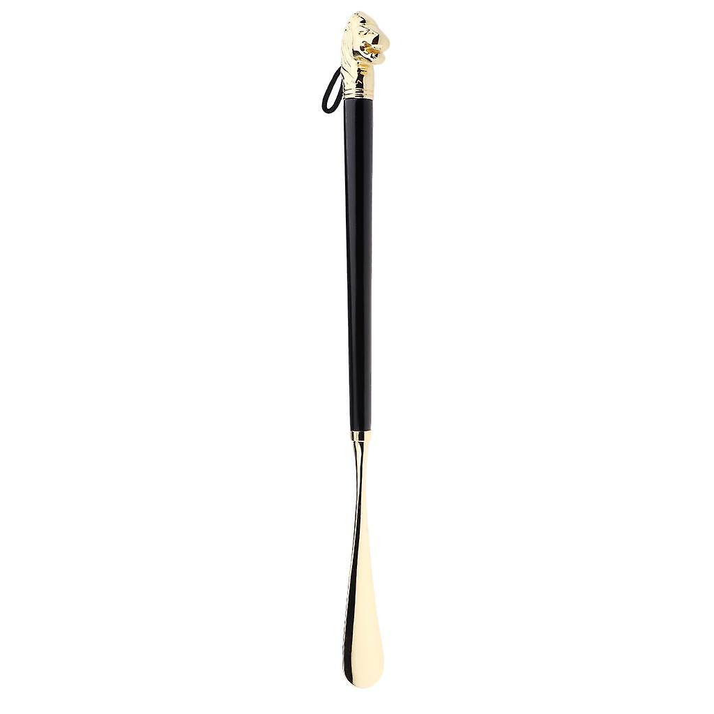 Vintage Lion Head Long Metal Shoe Horn Black Wood Handle Solid Brass Spoon