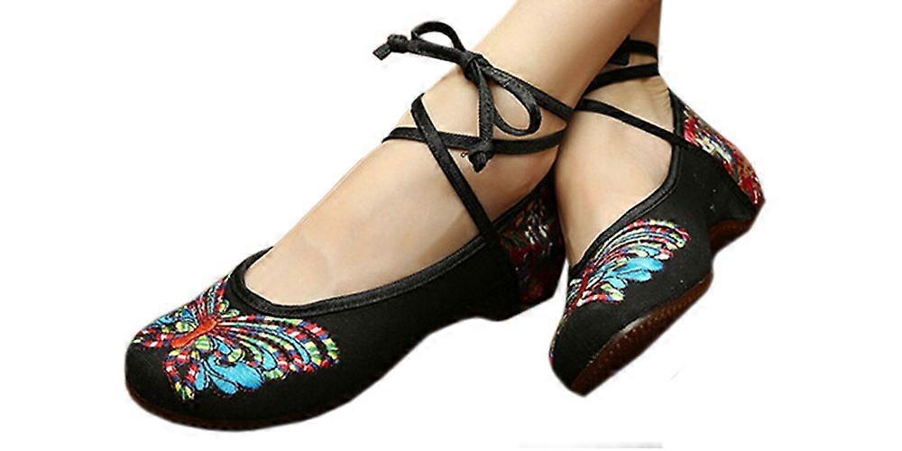 Vintage Chinese Embroidered Floral Shoes Women Ballerina Mary Jane Flat Ballet Cotton Loafer