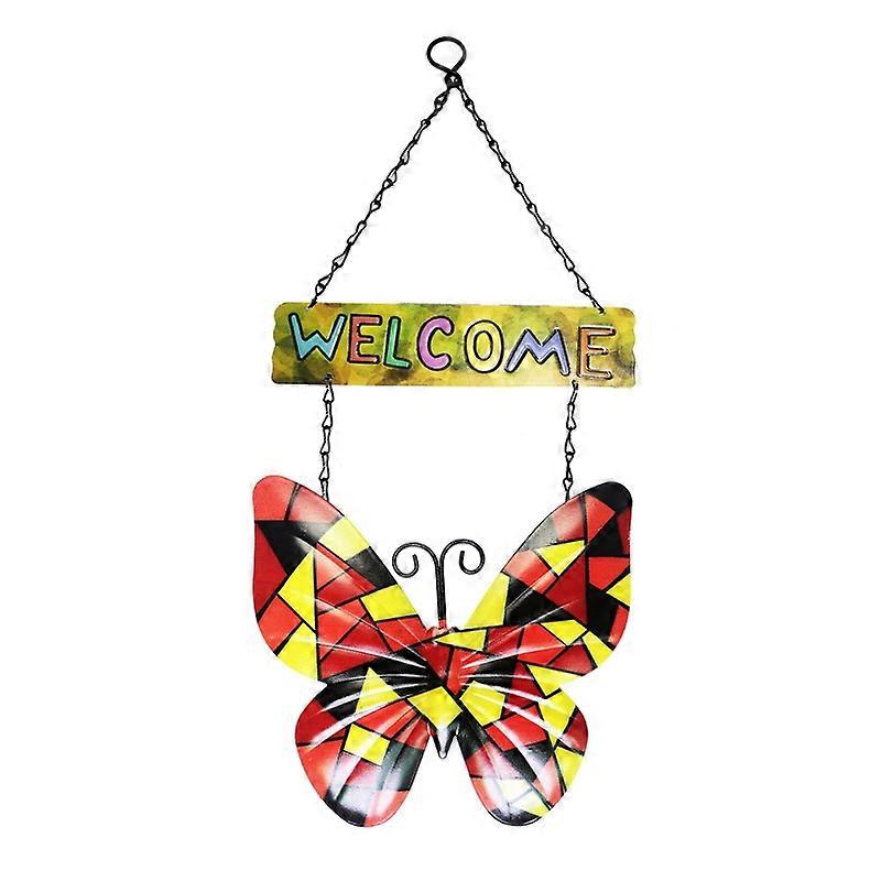 Vintage Metal Butterfly Welcome Sign Front Door Wall Decor Hanging Outdoor Wreath Decorative Hallway Porch Bar