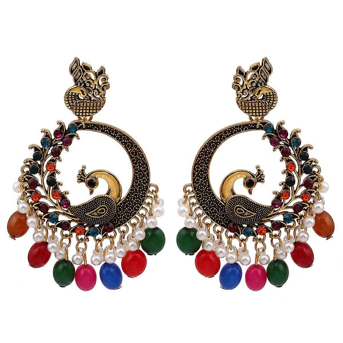 Vintage Colorful Crystal Peacock Drop Earrings Indian Fashion Jewelry Gold Alloy Beads Tassel Earrings Party Jewelry Bijoux Gift