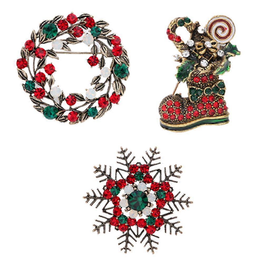Vintage Christmas Brooch Colorful Diamond Alloy Holiday Lapel Pin for Women, Stylish Retro Gift Accessory