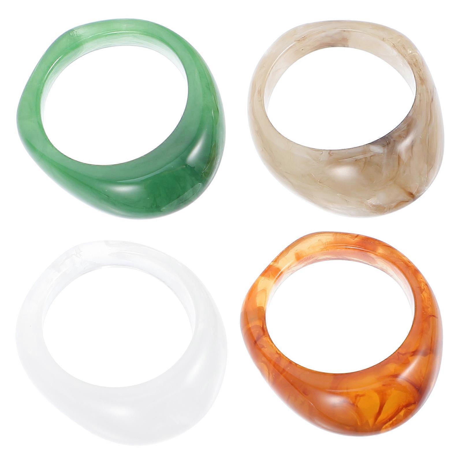 Vintage Assorted Color Resin Finger Rings 4Pcs Cute Rings Set For Mothers Shopping Fashion Accessory