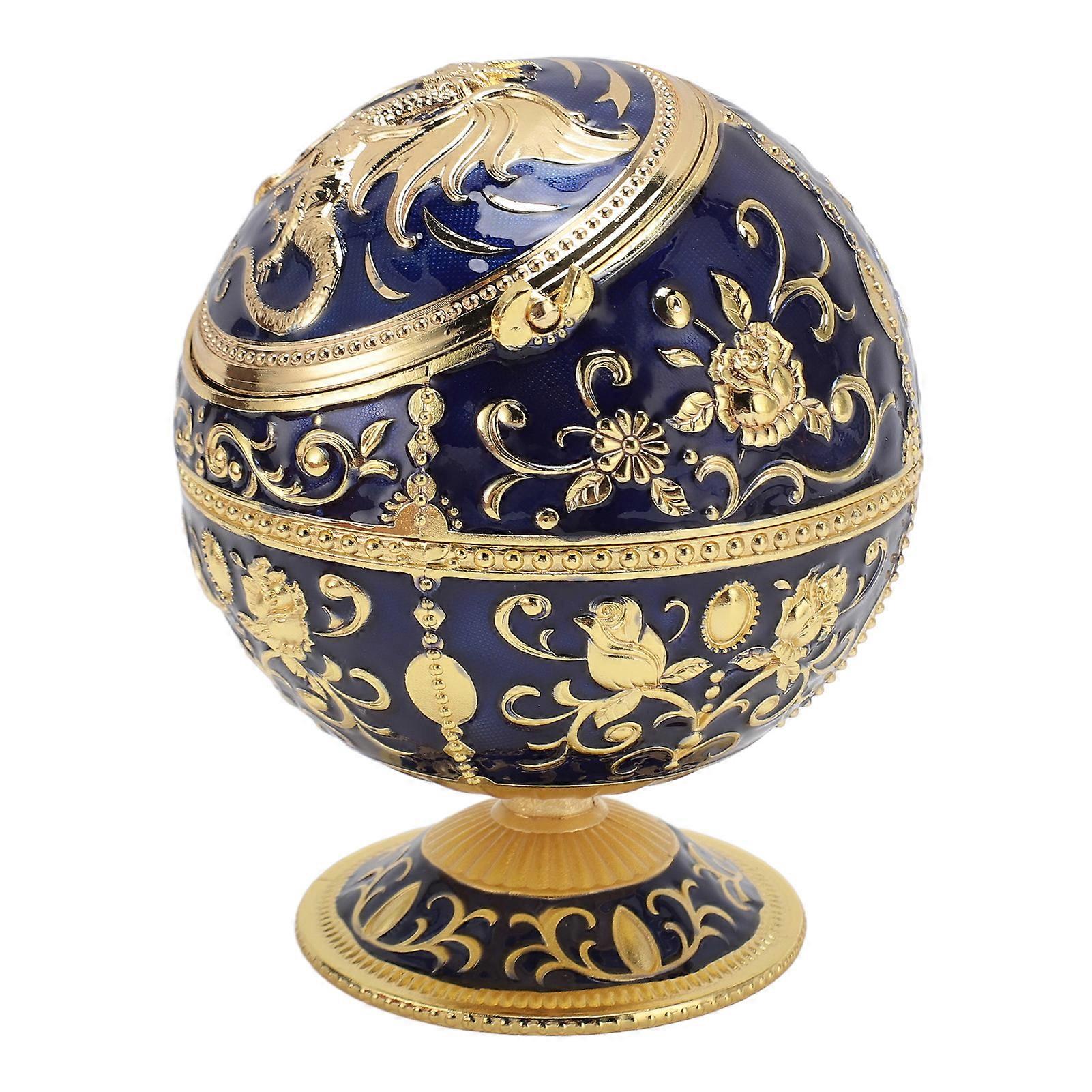 Vintage Ashtray Zinc Alloy Dragon Pattern Windproof Portable Cigarette Ashtray with Lid for Home Hotel KTV Blue