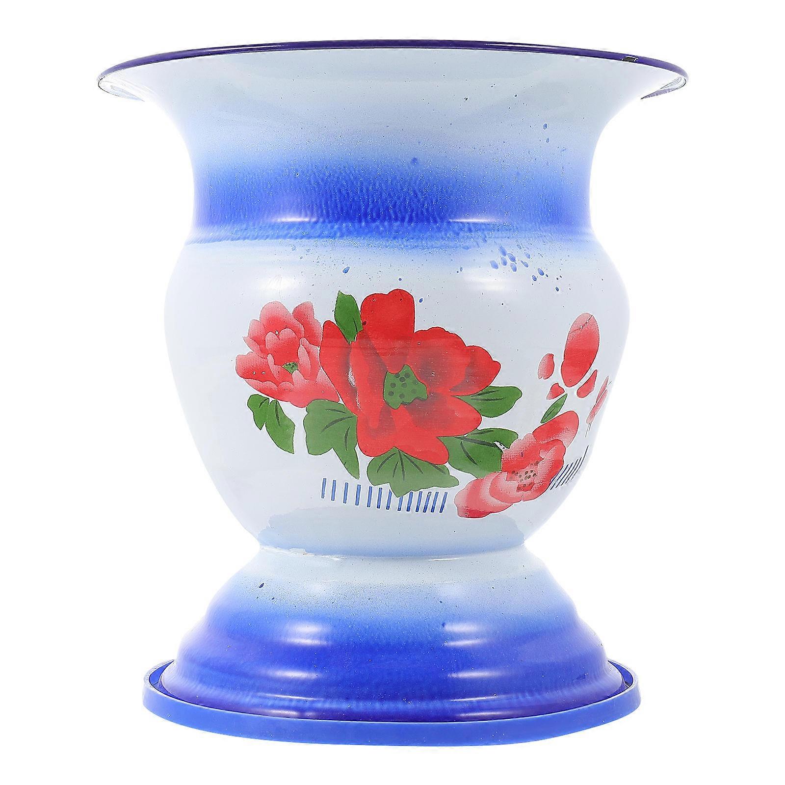 Vintage Style Spittoon Potty Round Urinal Pot Household Use Iron Blue for Bedside Spittoon 1Set
