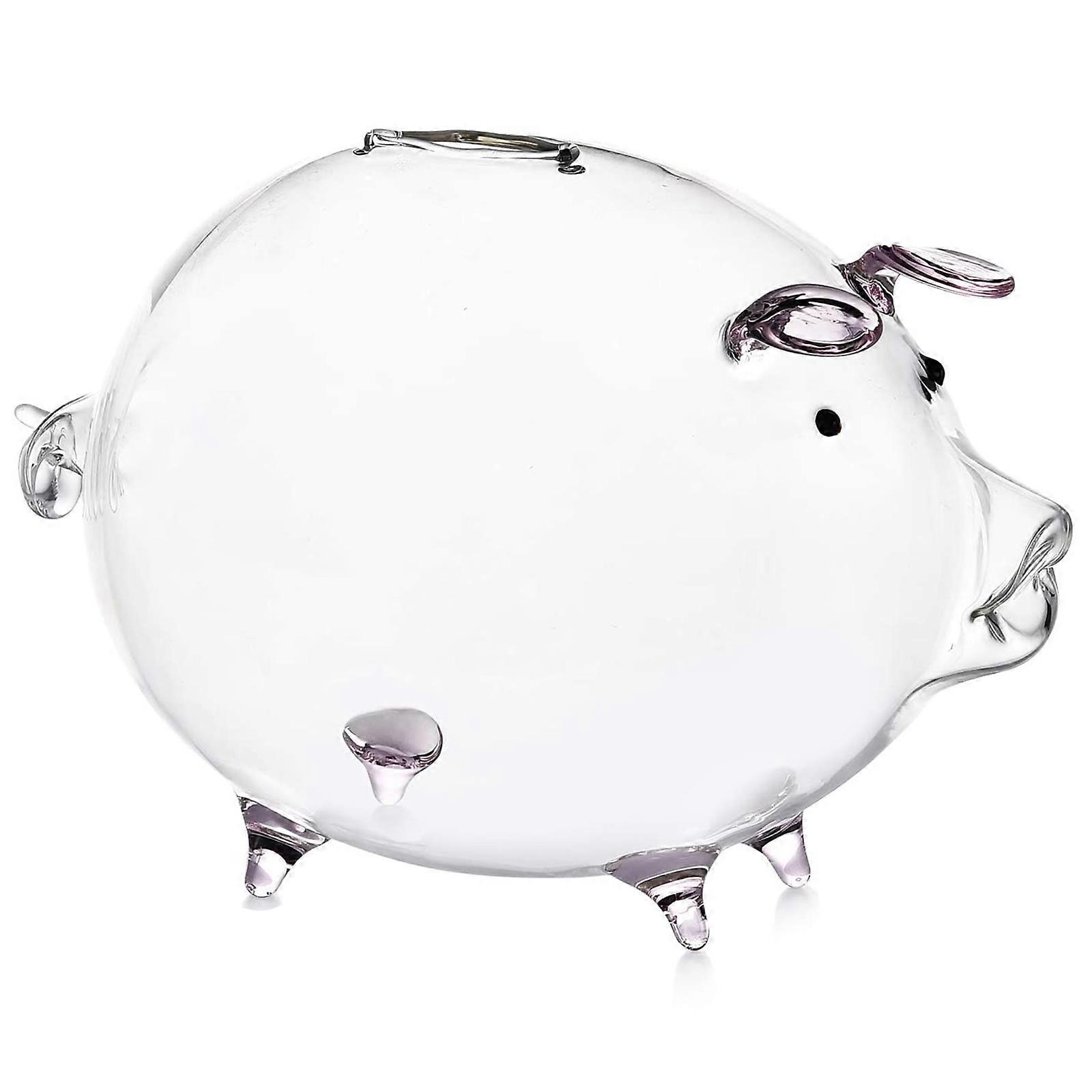 ["Pig Piggy Bank Money Boxes Coin Saving Box Cute Transparent Glass Souvenir Birthday Gift For Children Kids\n\nPiggy Bank Transparent for Creative Glass Coin Bank Small Glass Piggy Bank Money for Children Boys and Girls Birthday Gifts Home Decorative Gift Box\n\nbrand new and high quality\n\nFeatures:\nTransparent Display: Our piggy bank design with the transparent glass which can accurately calculates your money and shows the total amount.(Total Capacity: 400 pieces of coins)\nSpecial Gift: the small piggy bank is an for ideal as a gift for your kids, as it’s wrapped in a beautiful gift box,it can teach your children about the value of saving money and develop a good habit of wealth\nPig is a symbol of wealth, fat for head is a sign of good fortune, it brings economic prosperity to people.\nThe sturdy pig bank is fired from high-borosilicate glass at a high temperature,. It combines the for wisdom and sweat of craftsmen. It is hand-made and durable.\nThis piggy bank's clean and transparent glass blends perfectly with the pig's posture, the edges are delicate which is a unique artistic expression.\nWhether it's a coin or a banknote, the expression of piglet is for always pleasant and lovely.\nIt’s not just deposit money , but also the happiness it will give you in the future.\n\nSpecification:\nMaterial:glass\npiggy size:18*12cm\npiggie can put about 400 pieces coins\ncolor: Purple/Blue/Pink/Brown/Green\n\nNote:1.Please allow 0-1cm error due to manual measurement. pls make sure you do not mind before you bid.\n 2.Due to the difference between different monitors, the picture may not reflect the actual color of the item. Thank you!\n\nPackage includes:\n1* piggy bank"]