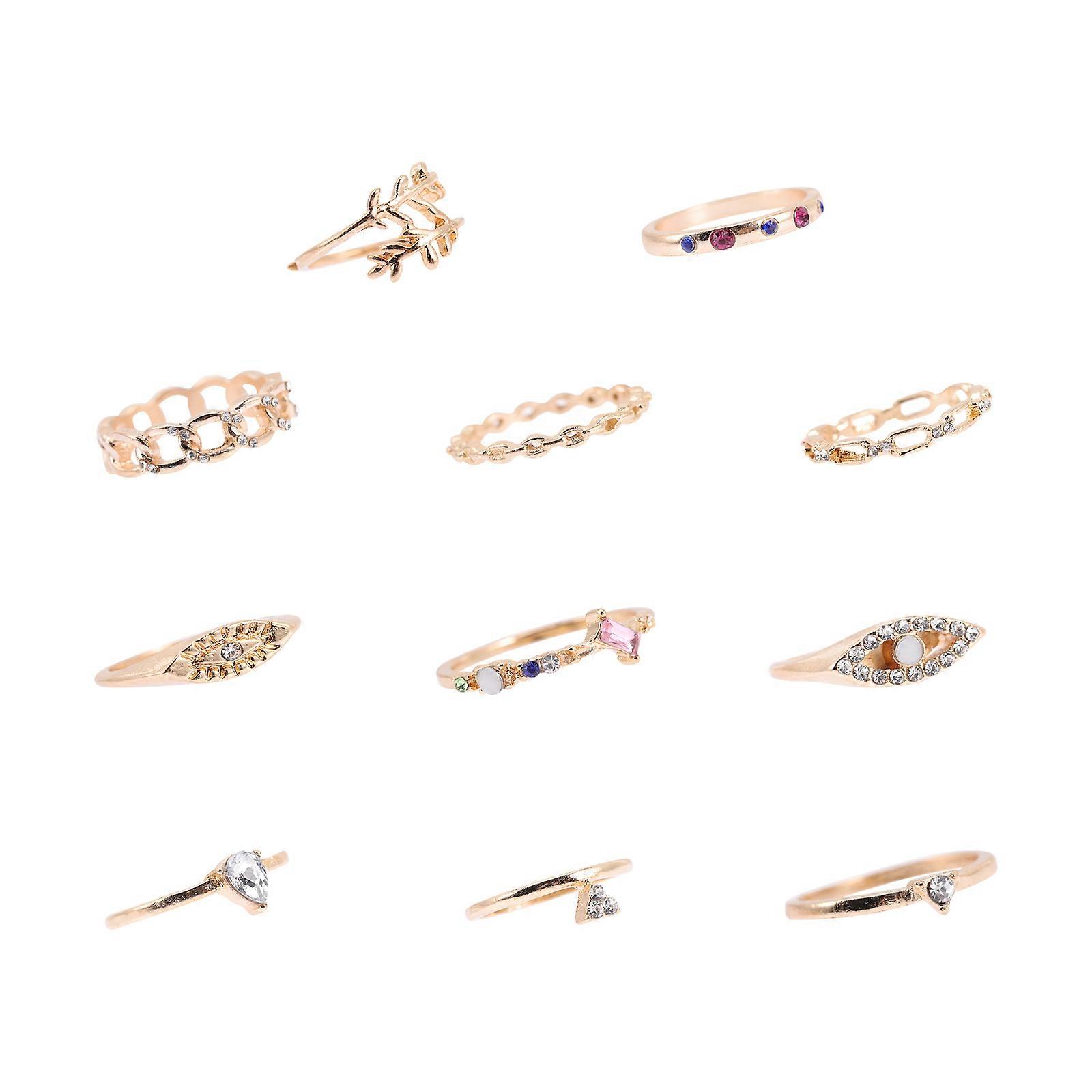 Fashion Rings For Women Chic Ring Set Jewelry Party Daily Wear Golden 2x2cm Alloy Decoration 11Pcs
