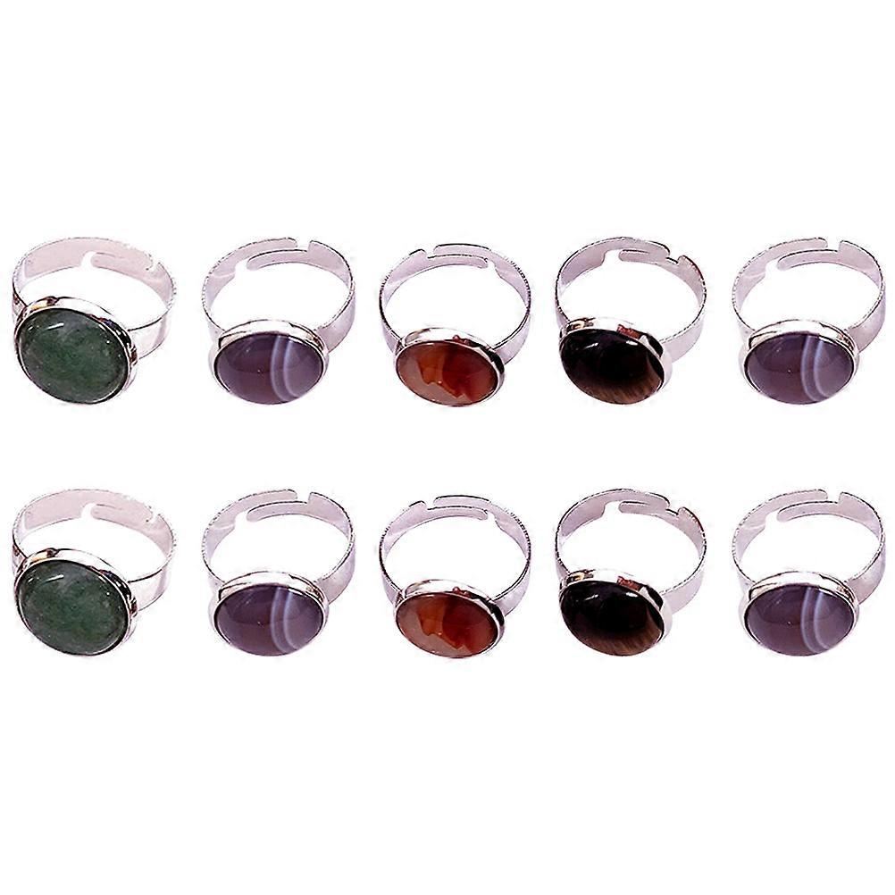 Stone Rings for Women Adjustable Open Ring Fashionable Jewelry Assorted Color 2.6X2.4CM 10Pcs