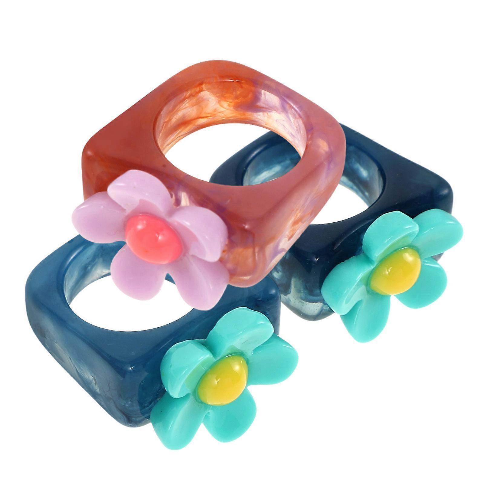 Flower Resin Rings for Finger Jewelry Decor 3Pcs Assorted Rings