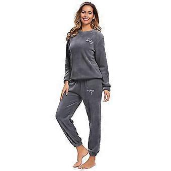 Warm Pajamas Fleece Top Trousers Round Neck Soft Pajamas Set
