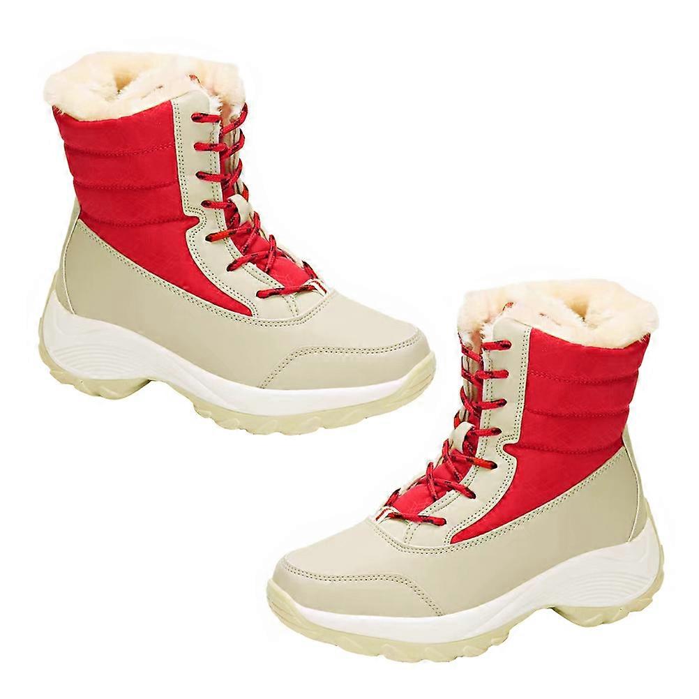 Warm Faux Fur Lined Women Snow Boot Winter Nonslip Lace Up Shoes Booties