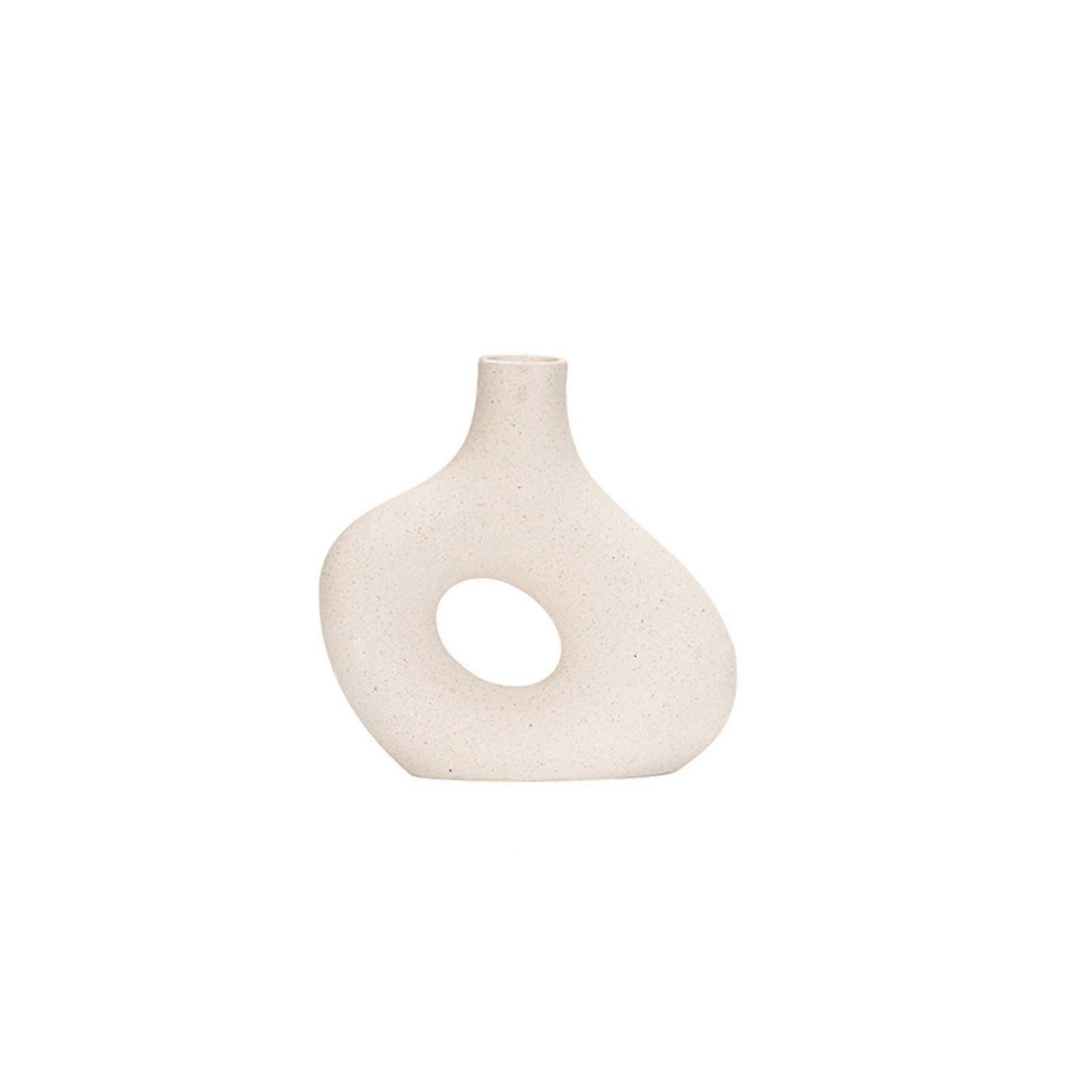 Circle Hollow Ceramic Vase For Living Room Decor, Pampas Grass Vase For Modern Decor, White Boho Vase