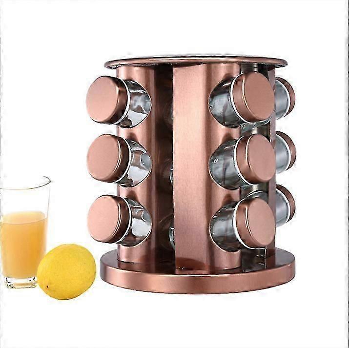 Spice carousel with 12 spice jars, 360 rotatable, transparent spice jars,stainless steel,copper
