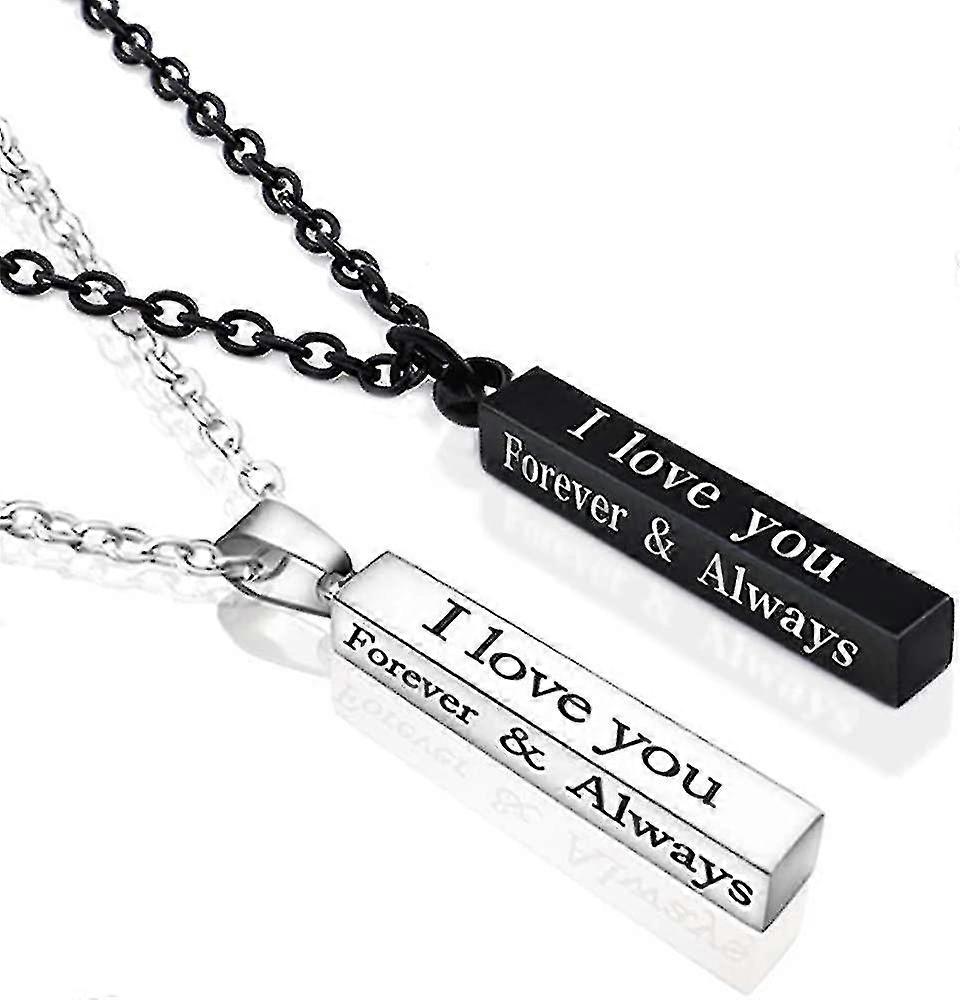 Always And Forever Couples Necklace: Stainless Steel Matching Engraved Set For Him And Her Alim Gift