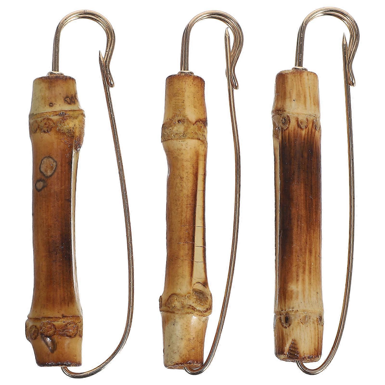 Women Safety Pin Vintage Bamboo Decorative Safety Pin Charms Brooch For Men Suit 3.4X0.7X0.7in 3Pcs