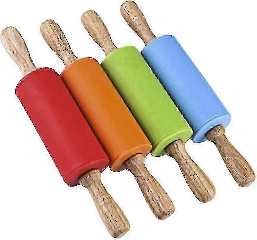Mini Rolling Pin, Kids Rolling Pins Wooden Handle Non-stick Silicone Rolling Pins Pastry Brushes Dough