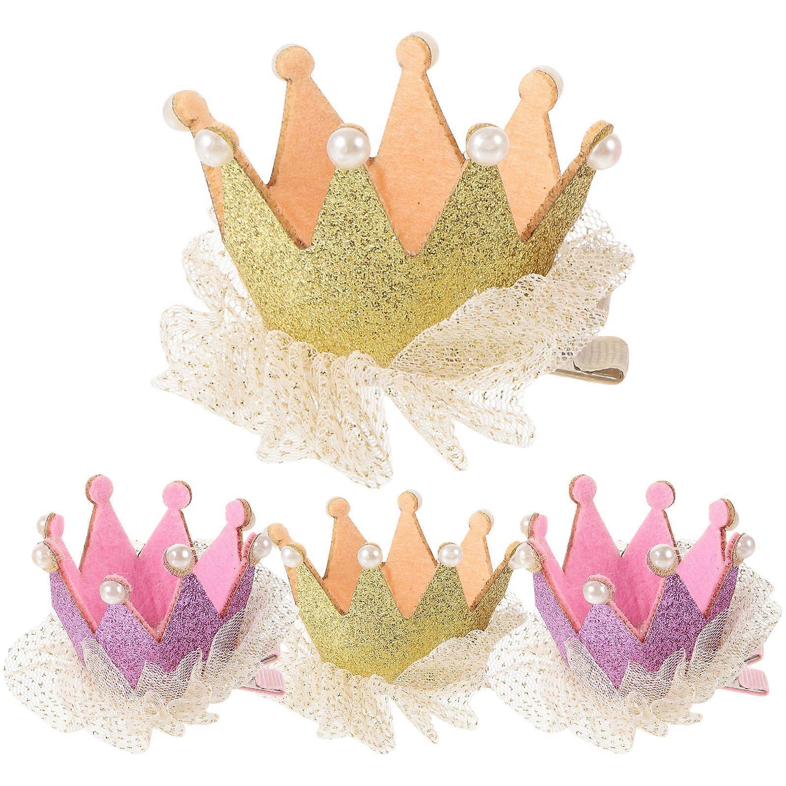 Lovely Hairpin for Girls with Crown Design Assorted Color Plastic Resin Kids Headdress 4Pcs