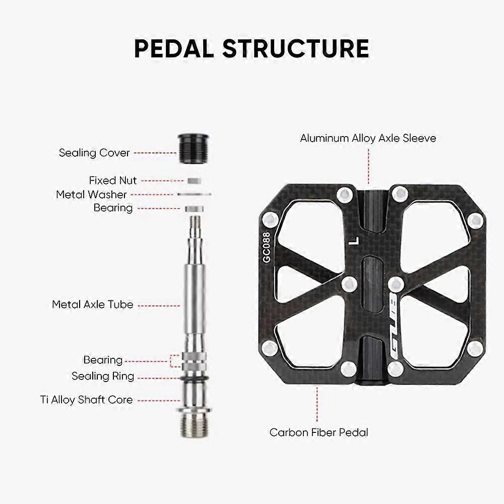 Bicycle Carbon Fiber Pedal Ti Alloy Axis Road Bike Pedal 3 Bearing Anti-Skid Pedal