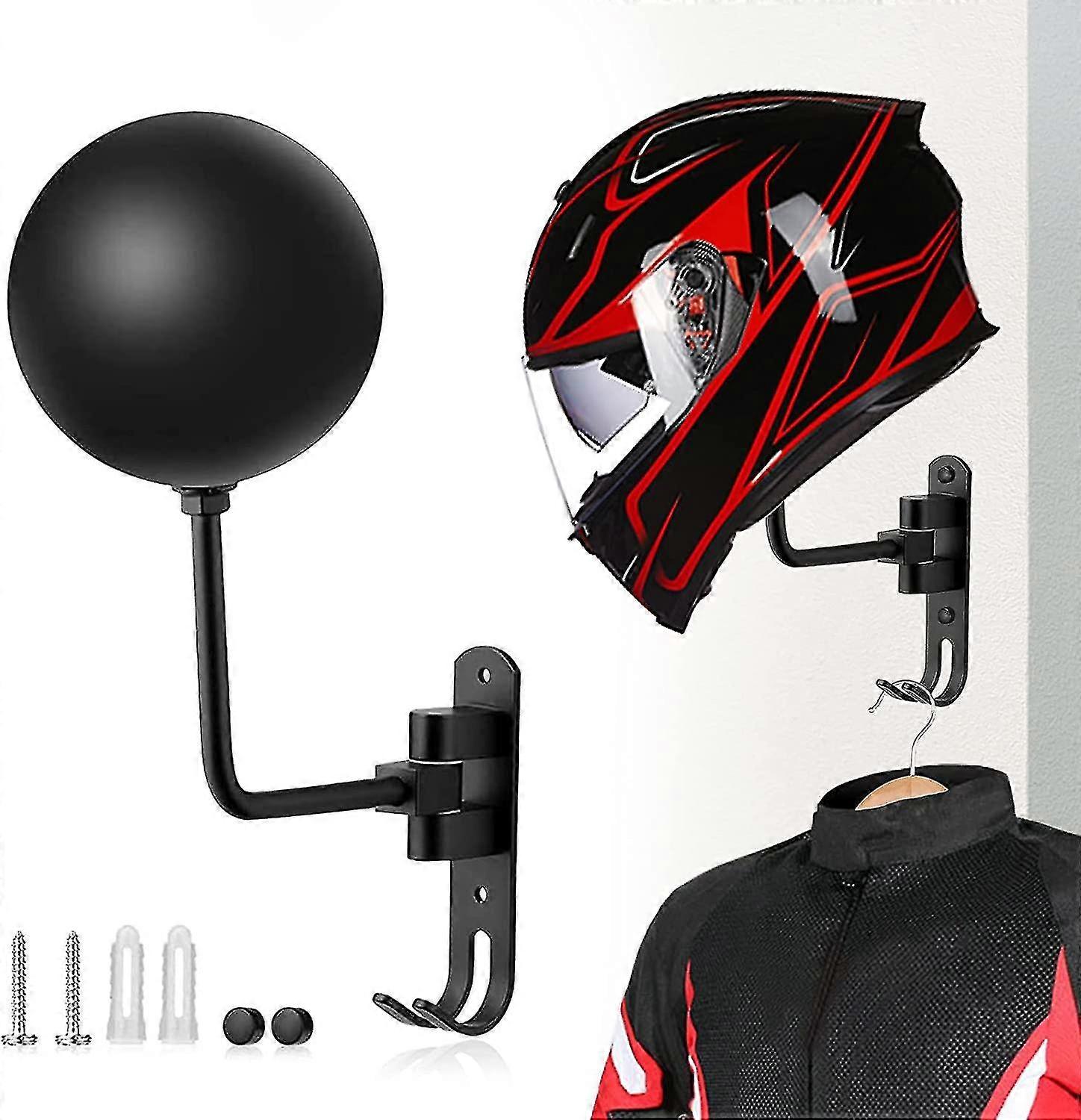 aluminum Imported 180 Degree Rotatable Helmet HolderWall mount bracket for our helmet hook. With rotatable angle design, you can rotate the helmet 180 degrees to a suitable angle. When not in use, the stand can be parallel to the wall to save space Round Ball Design with Double HookThe round ball design has a diameter of 4.7 inches (about 12 cm), the contact with the helmet is a spherical surface and a larger area, which helps to better maintain the shape of the helmet and hat. Thickened double hooks make it easy to hang keys, towels, coats, sportswear, etc. Sturdy and Durable Helmet HolderThe helmet holder motorcycle is made of high-quality space aluminum, which will not fade and rust. The motorcycle helmet bracket is durable and not easily deformed. Strong bearing capacity, can fix helmet coating. Easy to InstallEasy to install, let your helmet hang safely on the wall, assemble the ball with the rack, mark the installation location, drill 2 holes (6mm diameter), drive in the wall expansion tube, and finally screw the helmet rack to the wall. Wide ApplicationCan accommodate motorcycle helmets, bicycle helmets, baseball helmets, football helmets and hats, etc. Ideal for homes, garages, motorcycle shops, showrooms, offices or anywhere you need to hang.