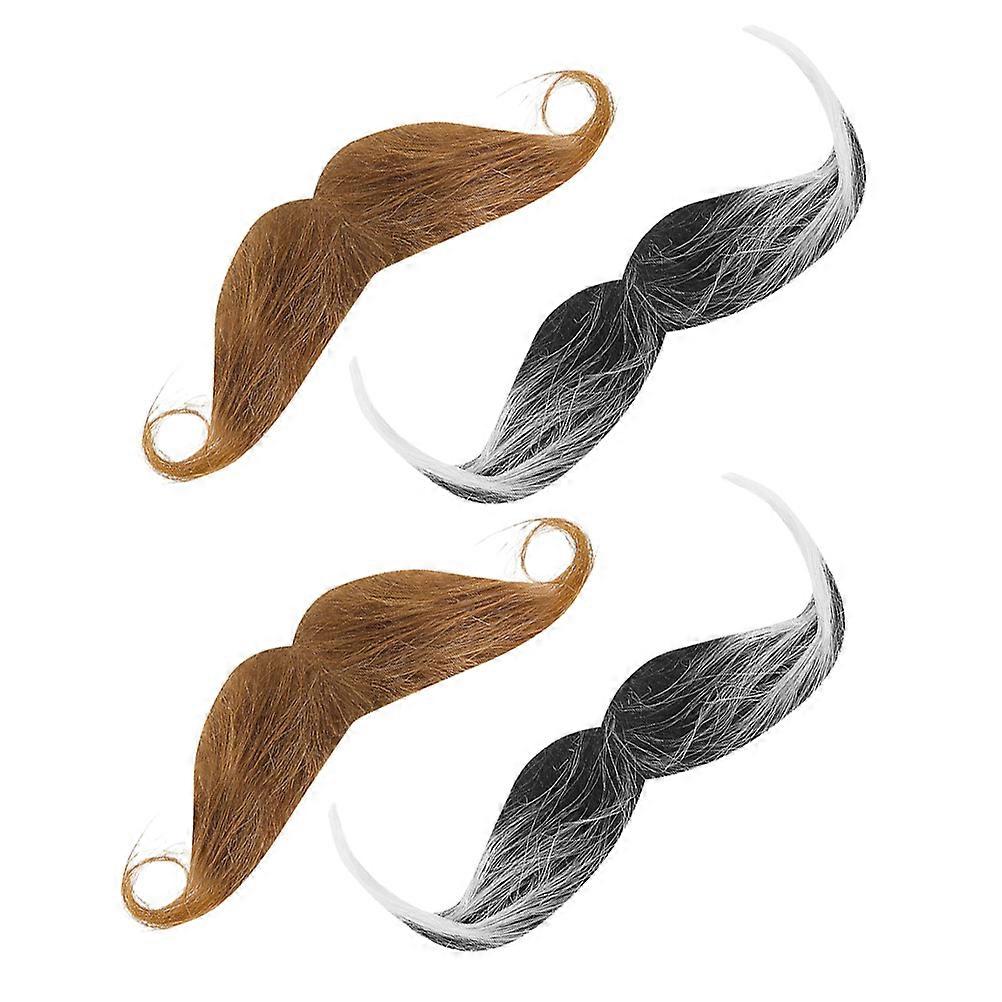 Halloween Party Props False Mustache Realistic Design Curved Upward Black Brown 4Pcs