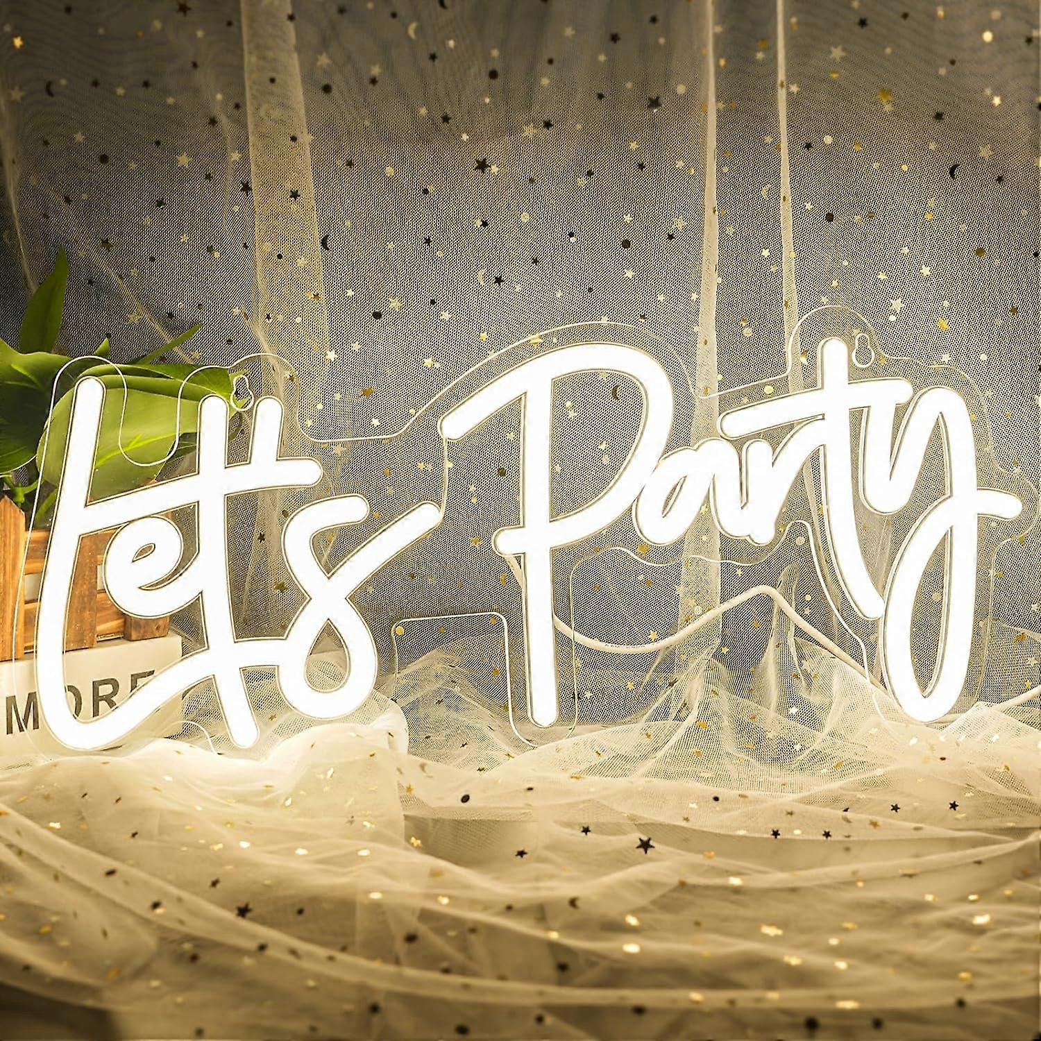 Let's Party LED Neon Sign, Warm White Neon Sign for Wall Decor,USB Powered Light Up Sign with Switch for Cafe, Bar, Kitchen, Restaurant, Home Deco