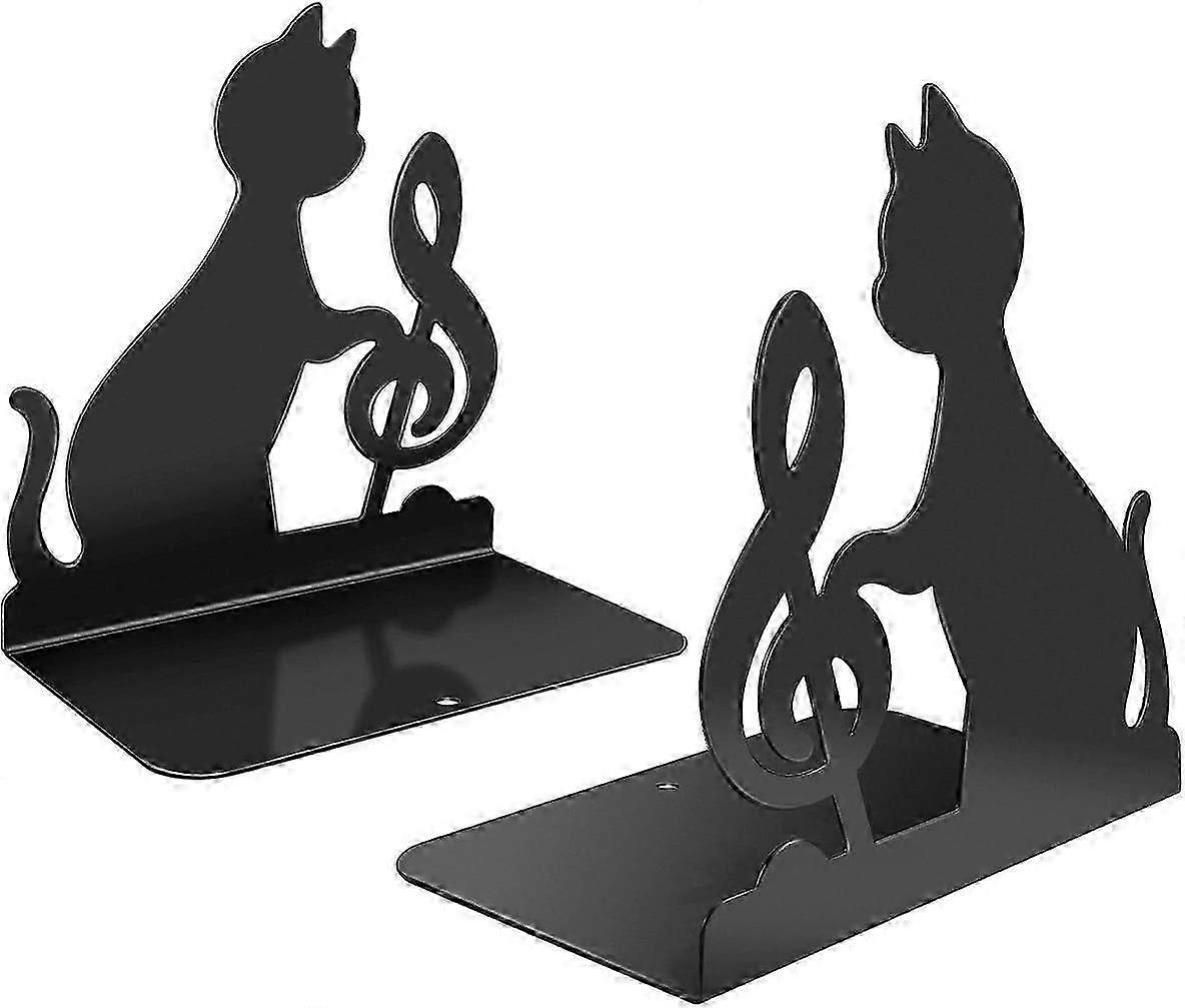 Bookends, 1 Pair of Book Holders, Black Metal, Bookends for Bookshelves, Geometric Design, Non-slip 17*16*10cm High Quality Beechwood Ends - Made of sturdy stainless steel with good workmanship, rustproof, rustproof, not only won't crack or break, not only ensure durability and longevity, but also look creative, shiny, elegant and delicate. Suitable for office, school, home. Functional bookends - Ideal for organizing heavy books, exercise books, manuals, files, office documents, CDs , DVDs, magazines or any other items you need in your home, office or school workspace. Special Decoration - Fashion Cat Music Note Design, Metal Black classic, can well decorate your bookshelf, desk and all kinds of books. Perfectly customize your study space and create a stylish reading environment. Anti-slip and anti-scratch -- Padded with rubber on the bottom, put them directly on your favorite shelf, they won't won't scratch the surface at all, also perfect for protecting bookends and protecting your books well. Perfect gift - Size: 17*16*10cm. Works well in your office, study, living room, bedroom, or even in the kitchen for cookbooks. These unique and beautiful bookends must make an ideal gift for anyone on your list.