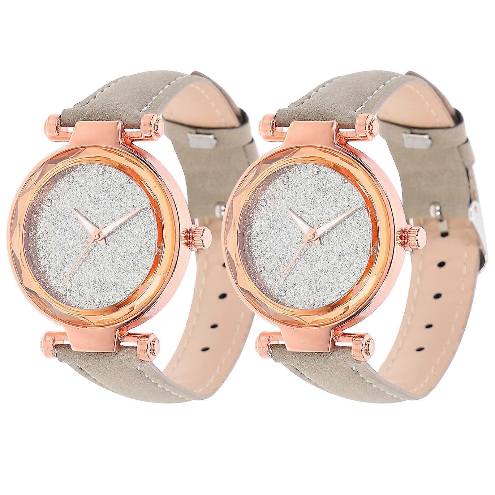 Accurate Timekeeping Modern Watch Unisex Outdoor Hiking Grey Suede Mechanical Movement 2Pcs