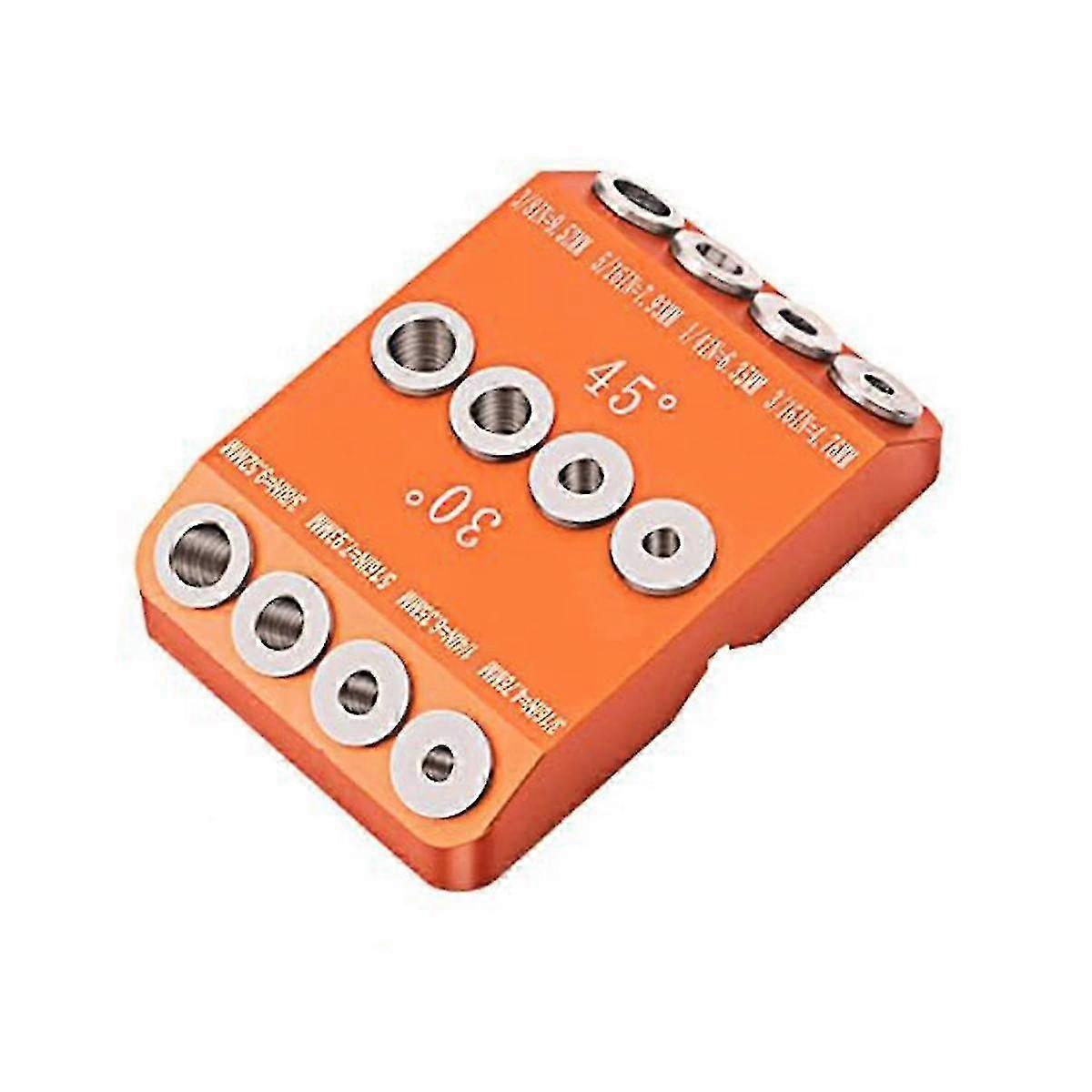 Constructed from high-quality aluminum, it offers a and durable design. It has an anodized orange finish that resists corrosion and maintains a high-quality finish. hole is equipped with a steel drill sleeve to prevent wear and drilling accuracy.Available in three drilling angles of 30, 45 and 90 degrees, this drill guide is perfect for 90 degree horizontal deck posts and 45/30 degree angled stair railings. The angle is fixed without deviation, and the hole can be drilled quickly and accurately with a hand- drill.Each drilling angle has four sizes of pilot holes to accommodate most cable railing lag screws. They come in sizes 3/8inch(9.52mm), 5/16inch(7.93mm), 1/4inch(6.35mm), 3/16inch (4.76mm) and are compatible with most cable rail lag screws. For more accurate drilling of corner holes, use a correspondingly sized drill bit.WIDE APPLICATION - This drill guide can be used with locking C-clamp and F-clamp to stability during drilling, resulting in burr-free and crack-free holes. perfect for wood, aluminum and stainless steel deck posts for cable railing and DIY woodworking projects. Additionally, the rails include 90-degree V-grooves for drilling in corners and cylindrical surfaces and N-shaped locating slots for precise drilling.Material: aluminumcolour: orangePackage Contents: 1 x Angle Drill Guide JigOnly the above package content, other products are not included.Note: Light reflection and different displays may cause the color of the item in the picture a little different from the real thing. The measurement allowed error is +/- 1-3cm.