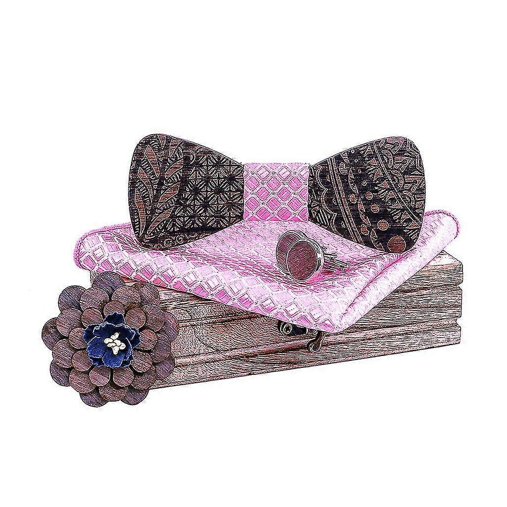 Manual Wooden Bow Tie Handkerchief Set Men's Bowtie Wood Hollow Carved And Box
